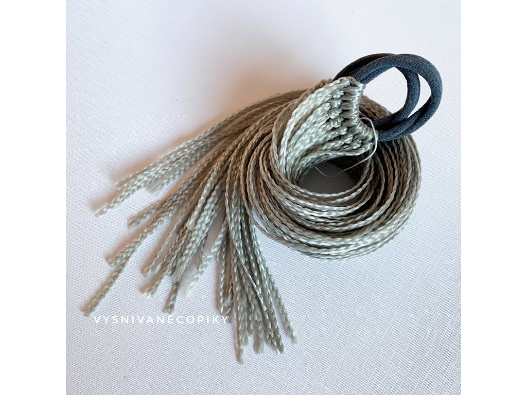 Pár hnědých zizi copíkových gumiček je připleten k pevné gumičce, jejíž délka při maximálním natažení je 25 cm. Pár hnědých zizi copíkových gumiček je tvořen ze 2 kusů zizi gumiček v balení.